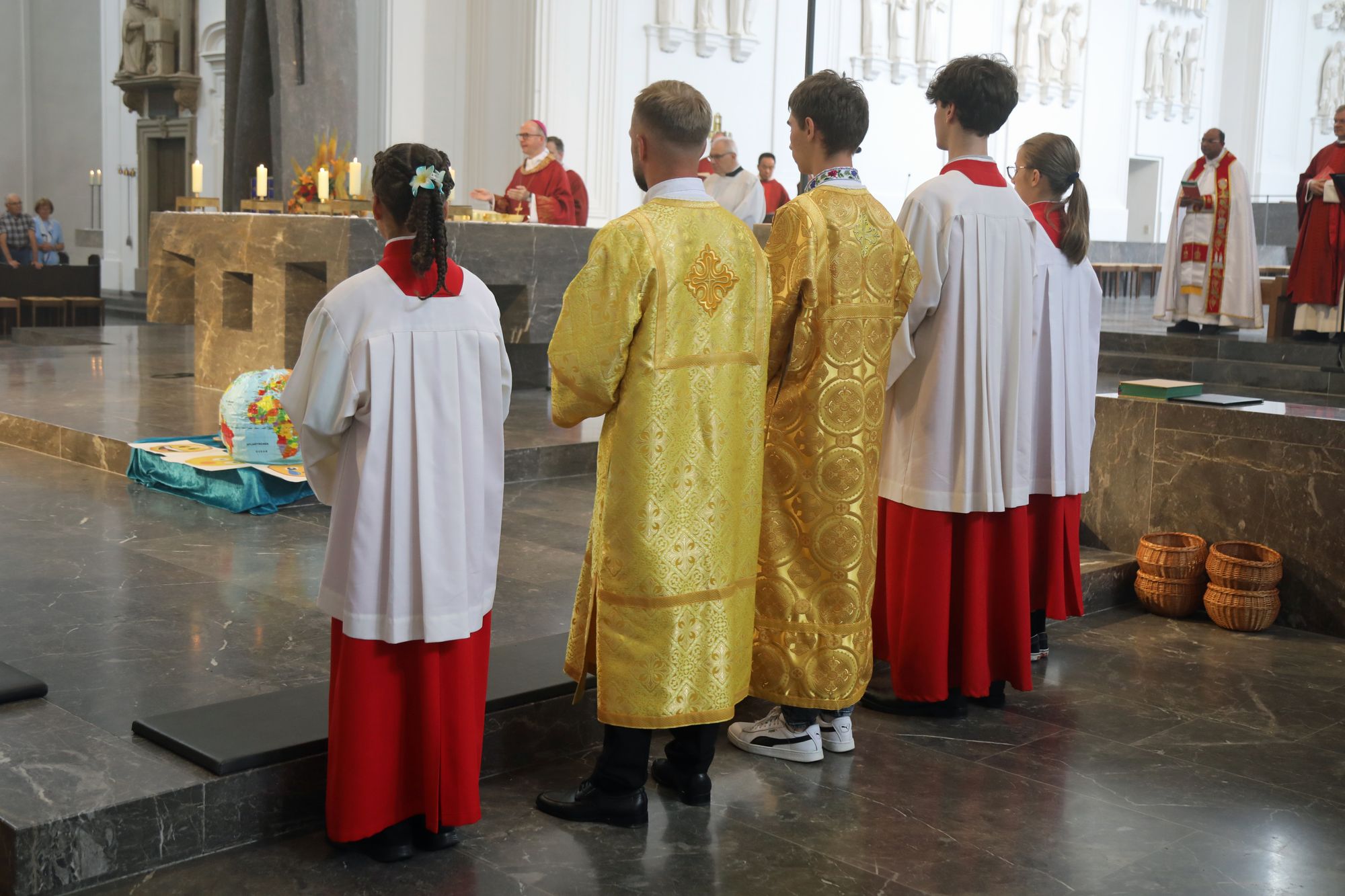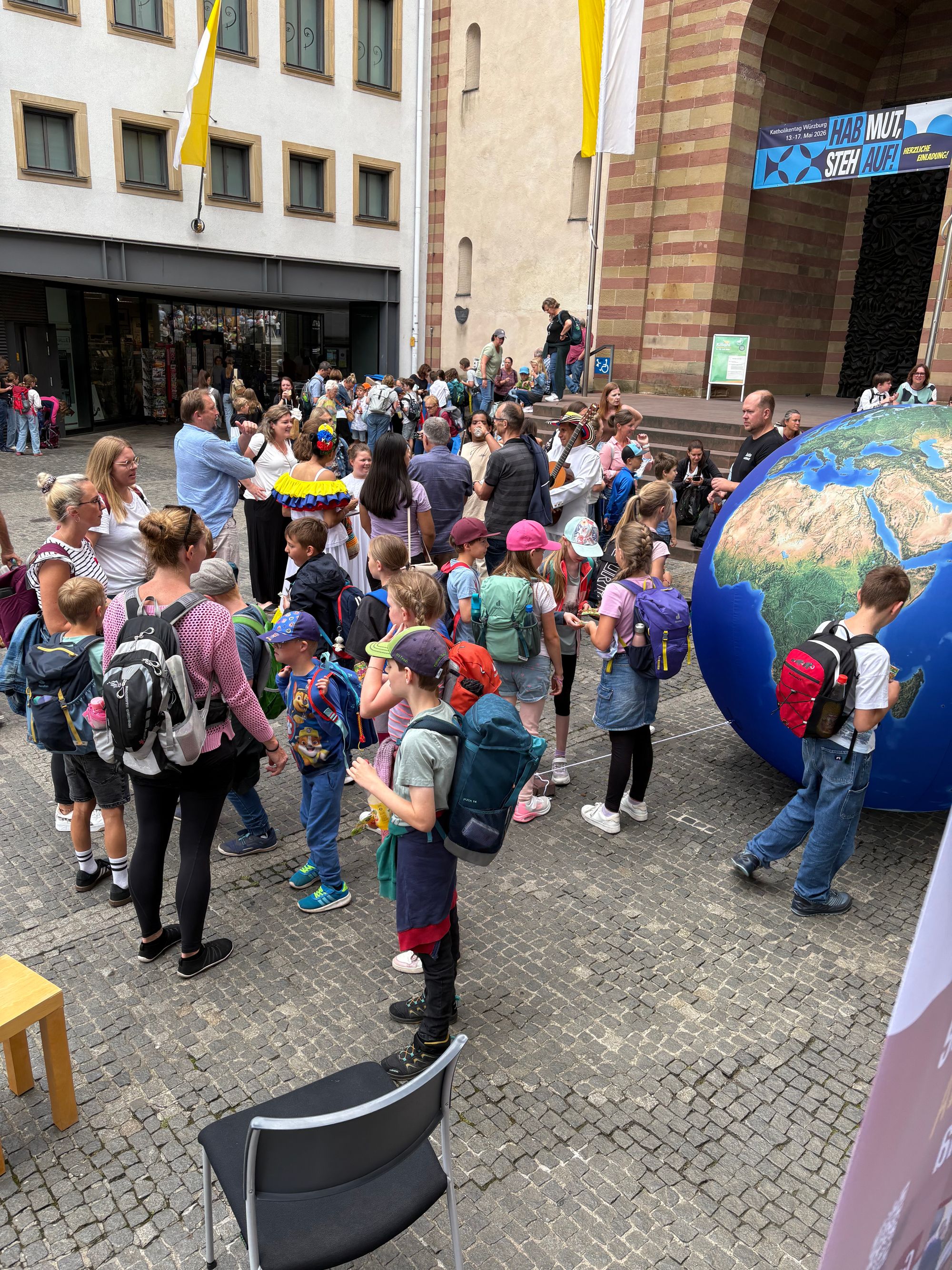 Auf eine kurze Reise in die Würzburger Partnerdiözesen Mbinga in Tansania, Óbidos in Brasilien sowie nach Villavicencio in Kolumbien, Ort des Engagements der Stiftung „Weg der Hoffnung“, haben Mitarbeitende der Diözesanstelle Weltkirche am Montag, 7. Juli, eingeladen. Rund 1400 Kommunionkinder aus dem gesamten Bistum waren gekommen, um mit Bischof Dr. Franz Jung im Kiliansdom einen Kiliani-Wallfahrtsgottesdienst zu feiern.