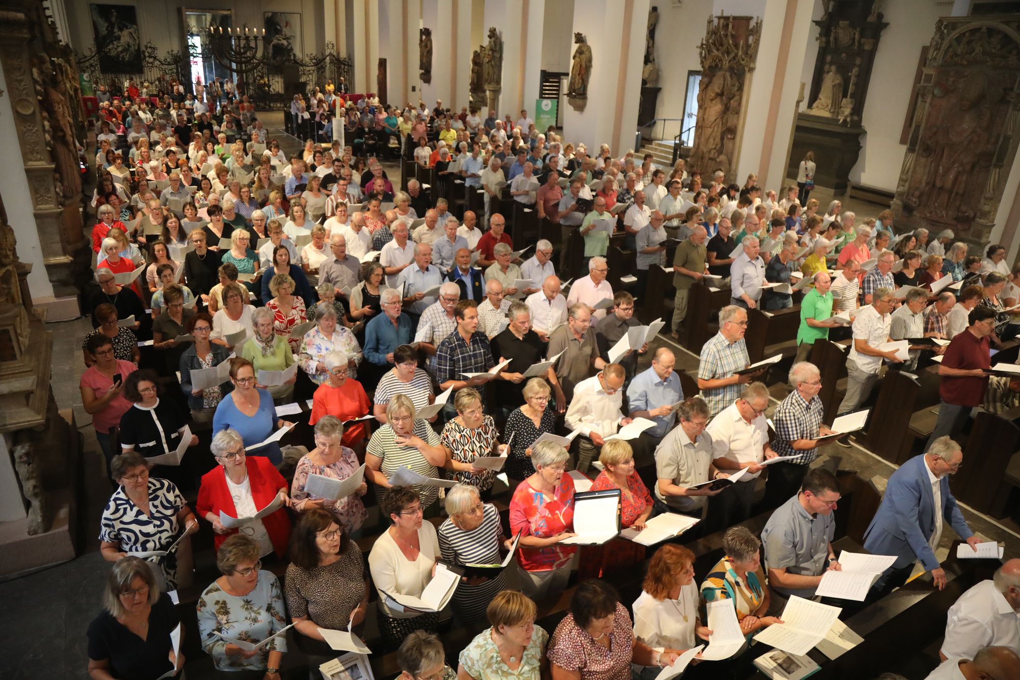 Christian Stegmann, Fachbereichsleiter für das Chorwesen in der Diözese Würzburg, leitete den großen Chor, derMitglieder aus mehr als 20 Chören aus dem ganzen Bistum vereinte.