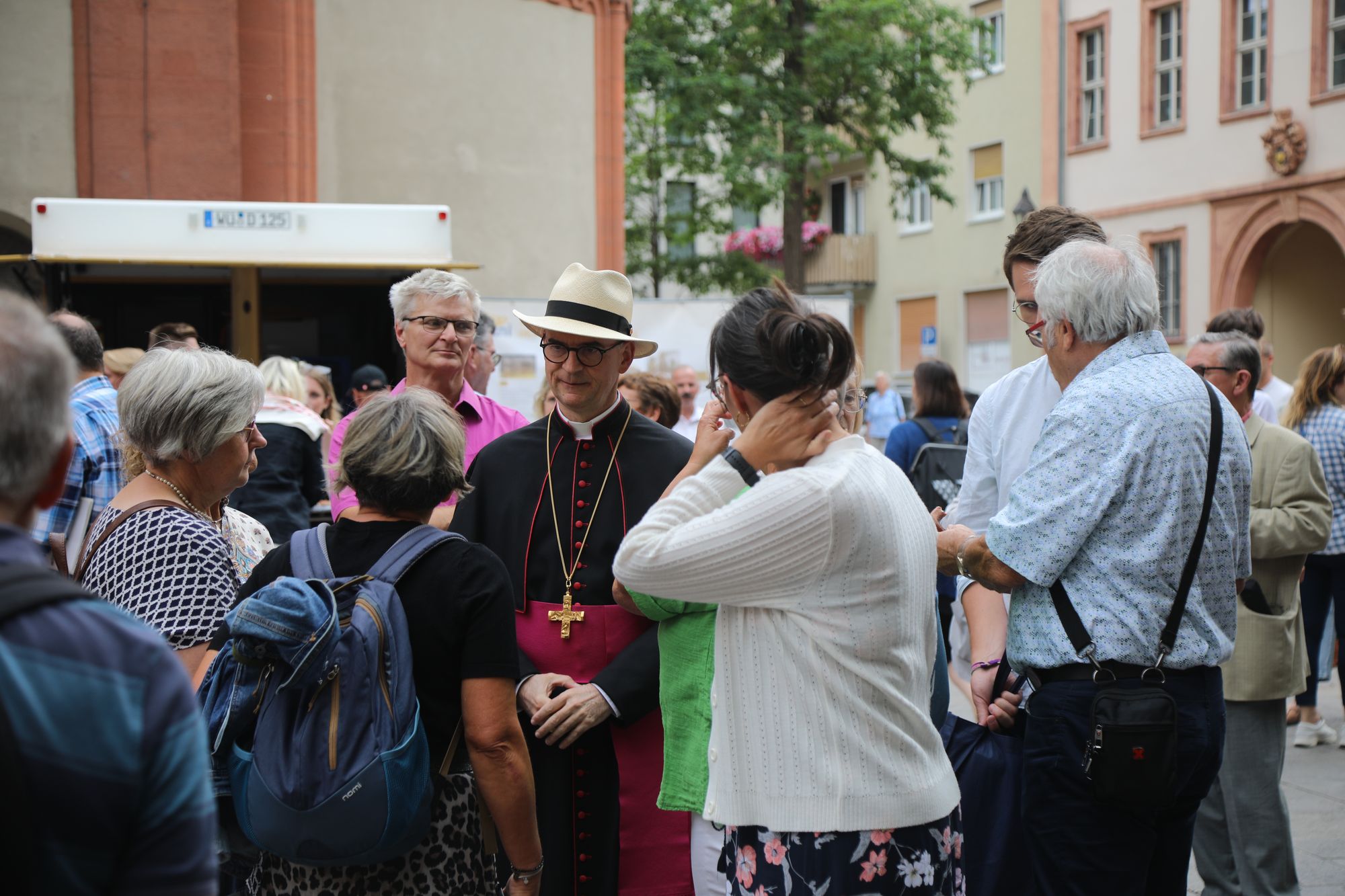 Bischof Dr. Franz Jung feierte am Donnerstag, 10. Juli 2025, einen Kiliani-Wallfahrtsgottesdienst mit Gläubigen aus der Region Würzburg. Eine Begegnung auf dem Kiliansplatz schloss sich an.