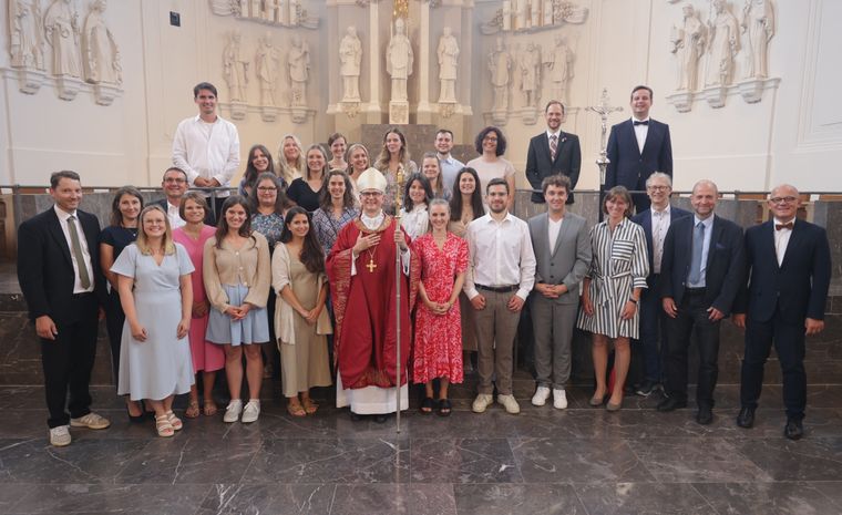 Beim Kiliani-Gottesdienst für die in Schule und Erziehung Tätigen hat Bischof Dr. Franz Jung am Freitag, 11. Juli, im Würzburger Kiliansdom 24 Frauen und Männern die Missio canonica verliehen.