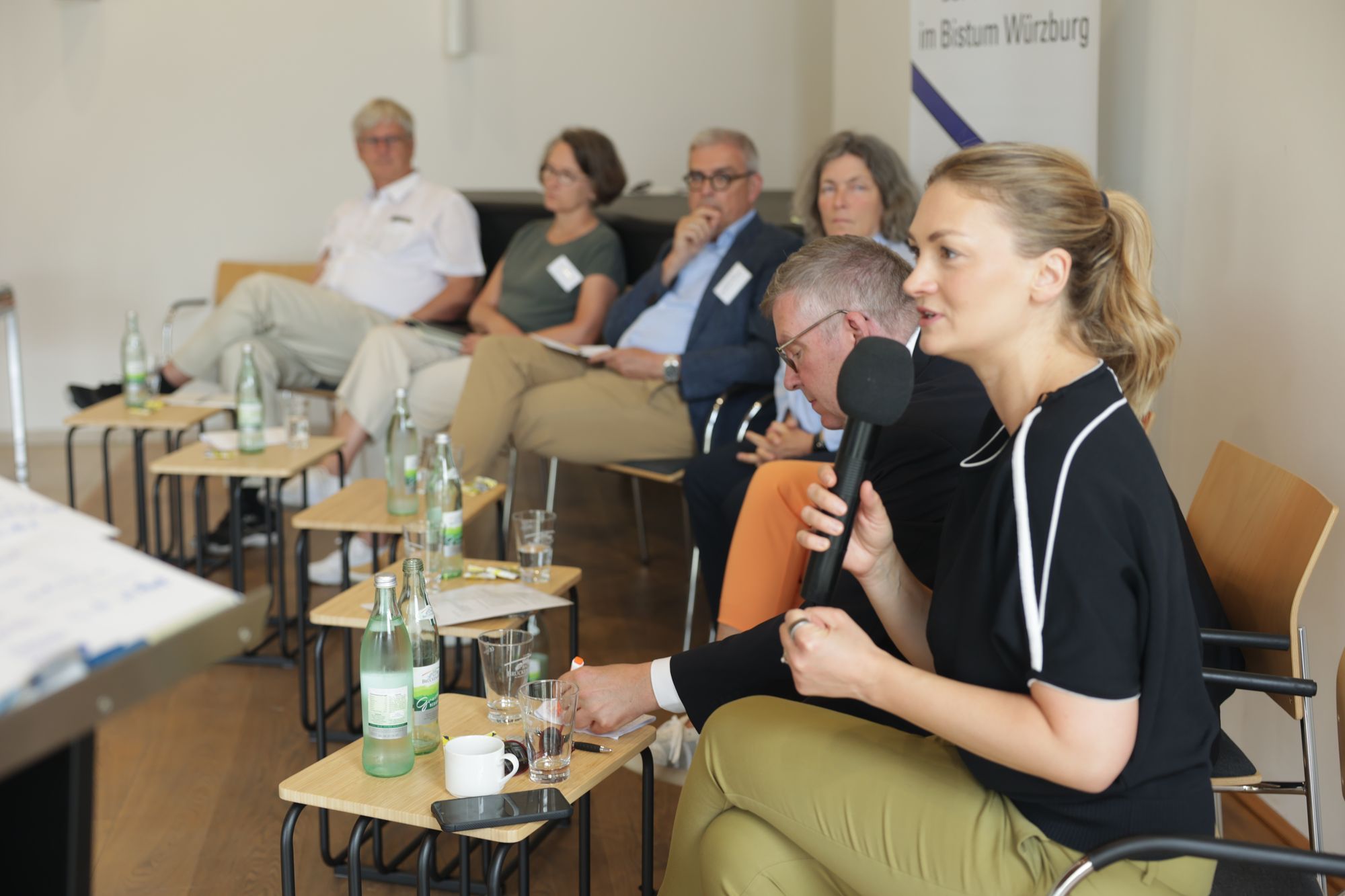 Um Sorge und Nöte der medizinischen und pflegerischen Versorgung in Unterfranken ging es bei einer Podiumsdiskussion bei der Kiliani-Vollversammlung des Diözesanrats der Katholiken im Bistum Würzburg am Samstag, 5. Juli, im Würzburger Burkardushaus. Auch Bayerns Gesundheitsministerin Judith Gerlach (rechts) nahm daran teil.
