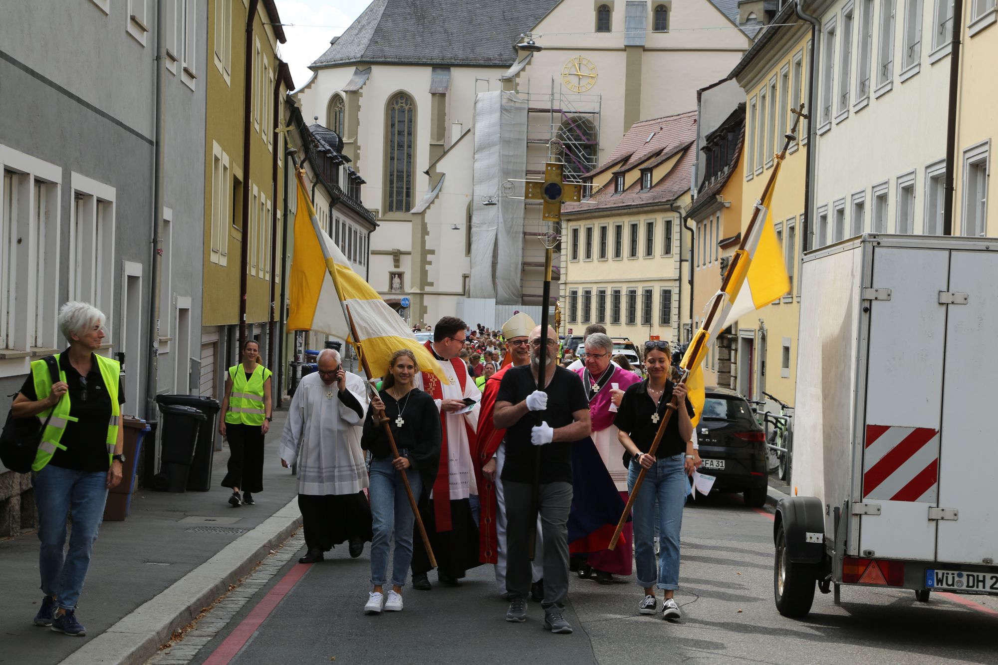 Mit einer Reliquienprozession von Sankt Burkard über die Alte Mainbrücke und einem Pontifikalgottesdienst im Kiliansdom ist am Sonntag, 6. Juli, die Kiliani-Wallfahrtswoche 2025 eröffnet worden.