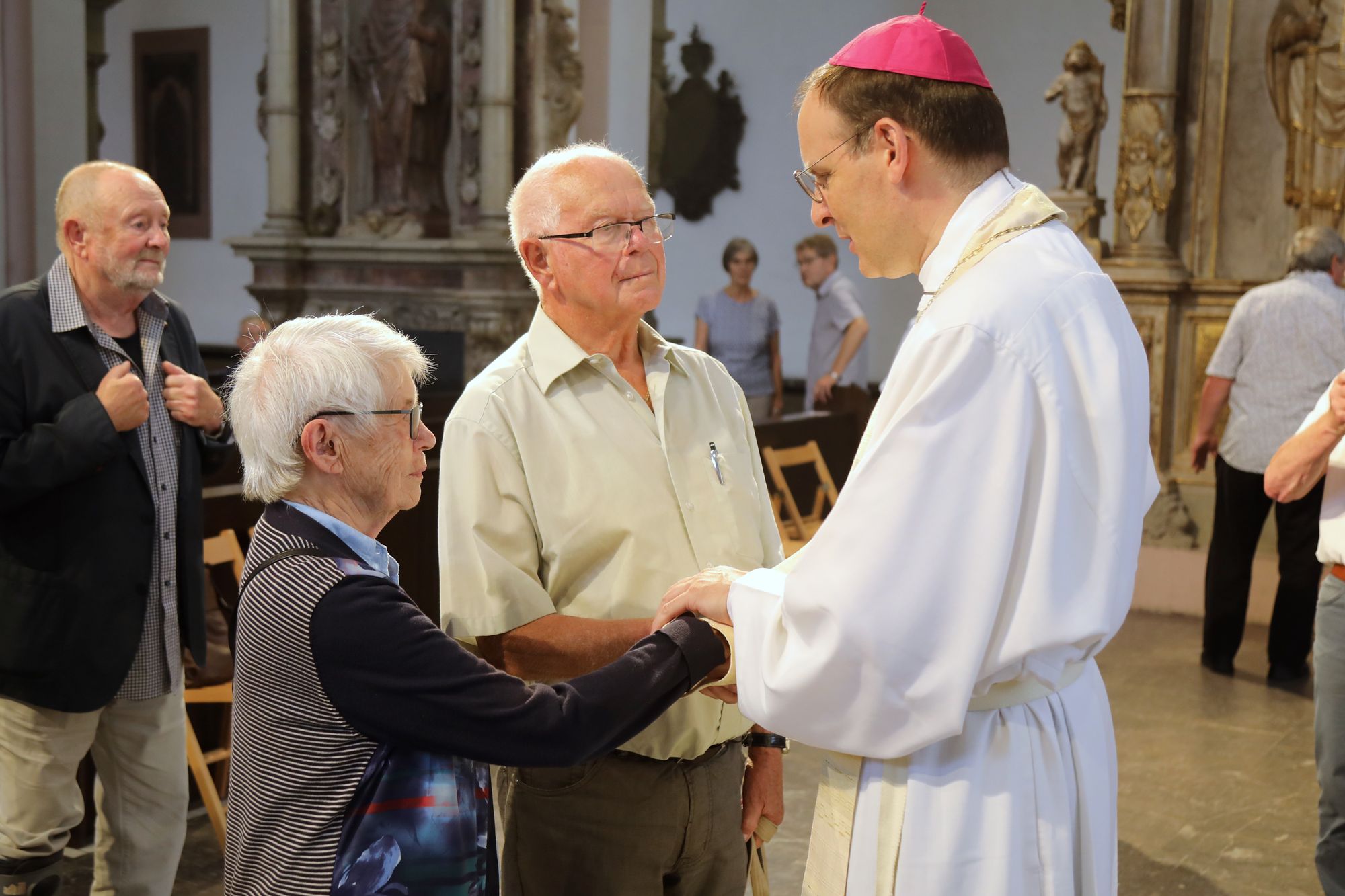 Mit rund 600 Eheleuten, die in diesem Jahr auf 50, 60 oder mehr gemeinsame Jahre blicken, feierte Weihbischof Paul Reder am Donnerstagnachmittag, 3. Juli, im Kiliansdom einen Pontifikalgottesdienst. Im Anschluss erteilten er und weitere Seelsorgerinnen und Seelsorger den Paaren einen Einzelsegen.