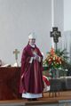 Eine Brücke zum Grund seines Besuchs schlug der Bischof zu Beginn mit dem Hinweis, dass Corona übersetzt „die Krone“ heißt und Kilian und seine Gefährten ihren Lebensweg in der Nachfolge Christi mit dem Martyrium gekrönt hätten. Ihr Beispiel müsse den Christen von heute Ansporn zur Nachfolge sein. In seiner Predigt kündigte der Oberhirte des Bistums Würzburg an, dass es trotz Corona bei dem Plan bleibe, Ende Oktober die neuen Pastoralen Räume zu umschreiben. Diesem Vorhaben liege das Jahresmotto der Diözese Würzburg zu Grunde, das ein Zitat aus dem Epheserbrief ist und in dem es heißt: „Ihr sollt mit allen Heiligen dazu fähig sein, die Länge und Breite, die Höhe und Tiefe der Liebe Christi zu ermessen, die alle Erkenntnis übersteigt.“