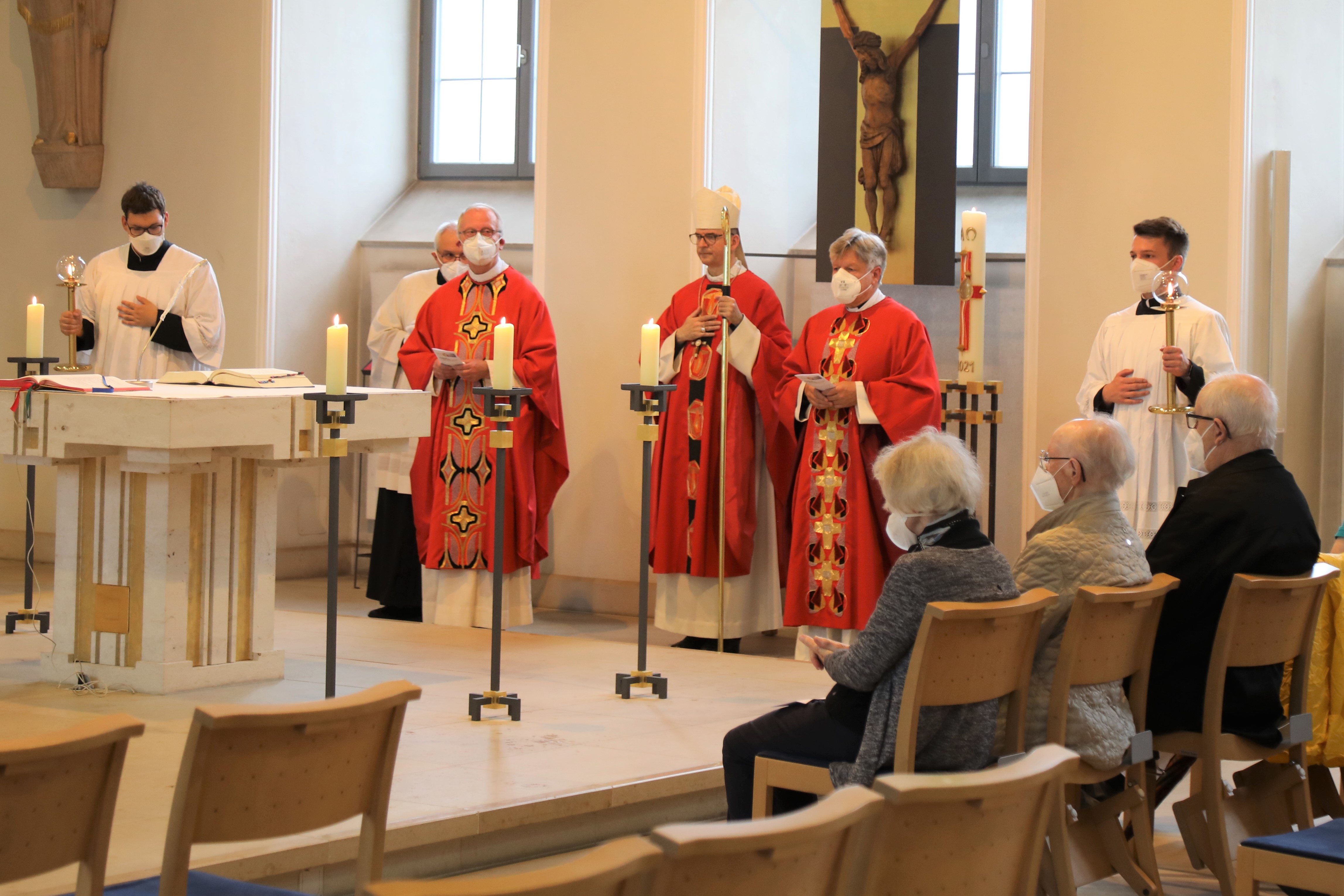 Zugleich brauche jedes Mitglied der Gemeinschaft Freiraum, um zu wachsen und sich zu entfalten. „Es gibt Zeiten, da ist man gerne zusammen, und es gibt Zeiten das ist man weit auseinander. Eine Gemeinschaft muss die Balance halten zwischen der Freiheit des Einzelnen und der Verbindlichkeit des Ganzen“, erklärte Bischof Jung. Kinder würden älter, bräuchten ein eigenes Zimmer, müssten eigene Wege ausprobieren. Zum Zusammenleben gehörten aber auch Korrekturen, fuhr der Bischof fort. „Manchmal geht es laut zu, manchmal muss auch geschimpft werden.“ Man müsse lernen, Rücksicht zu nehmen, andere zu Wort kommen zu lassen, miteinander zu teilen und seine Aufgaben gut zu erledigen. Bischof Jung zitierte die alten Mönche: „Wer alleine lebt, kann nicht heilig werden. Heilig kann nur der werden, der in Gemeinschaft lebt, weil er da gespiegelt bekommt, was funktioniert und was nicht.“