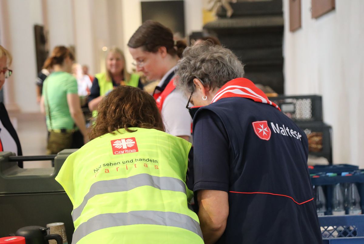 Weihbischof Paul Reder feierte am Samstag, 13. Juli, einen Kiliani-Gottesdienst für Menschen im Alter, in Krankheit und mit Behinderung im Kiliansdom. Mitarbeiterinnen und Mitarbeiter von Caritas und Malteser-Hilfsdienst kümmerten sich um das Wohlergehen der Gottesdienstbesucher.