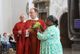 Einen besonderen Stern hatten die Ministrantinnen und Ministranten aus Maria Bildhausen mitgebracht. Sie überreichten Weihbischof Reder einen selbst gefertigten Holzstern, auf dem das Wort „Hoffnung“ in vielen verschiedenen Sprachen steht. „Wir nehmen heute aus diesem Gottesdienst, aus Ihren Worten, aus der Feier der Eucharistie Hoffnung mit“, sagte Martin Riß, Geistlicher Direktor des Dominikus-Ringeisen-Werks mit Sitz in Ursberg (Bistum Augsburg), zu dem Maria Bildhausen gehört. Einer der Ministranten umarmte spontan den Weihbischof. Außerdem übergaben sie eine Nachbildung des Ulrichskreuzes, dem Bistumspatron von Augsburg, verbunden mit einer Einladung in eine der vielen Einrichtungen des Dominikus-Ringeisen-Werks.