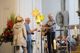 Würzburg (POW) Viele Hoffnungssterne sind am Samstagmorgen, 13. Juli, im Kiliansdom in Würzburg aufgegangen. Elf Sterne begleiteten die Fürbitten, auch zum Gabengang gehörte ein Korb mit Hoffnungssternen. Über allem schwebte der große gelbe Stern über dem Schrein mit den Häuptern der Frankenapostel und erinnerte an das Leitwort der Wallfahrtswoche „Wir haben seinen Stern aufgehen sehen“. Mit rund 500 Menschen aus dem ganzen Bistum feierte Weihbischof Paul Reder einen Kiliani-Gottesdienst für Menschen im Alter, in Krankheit und mit Behinderung. „Die Orgel hat heute besonders festlich gespielt und der Weihrauch duftet auch ein bisschen festlicher als sonst, weil Jesus sich so freut, dass so viele seiner Einladung gefolgt sind“, begrüßte der Weihbischof die Menschen.