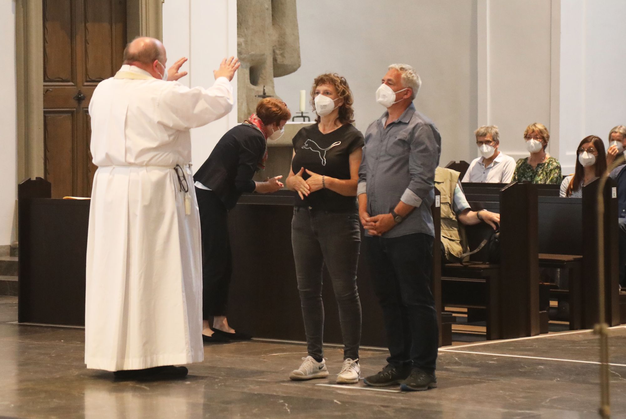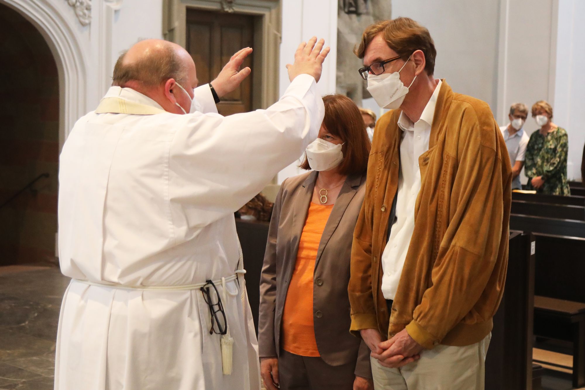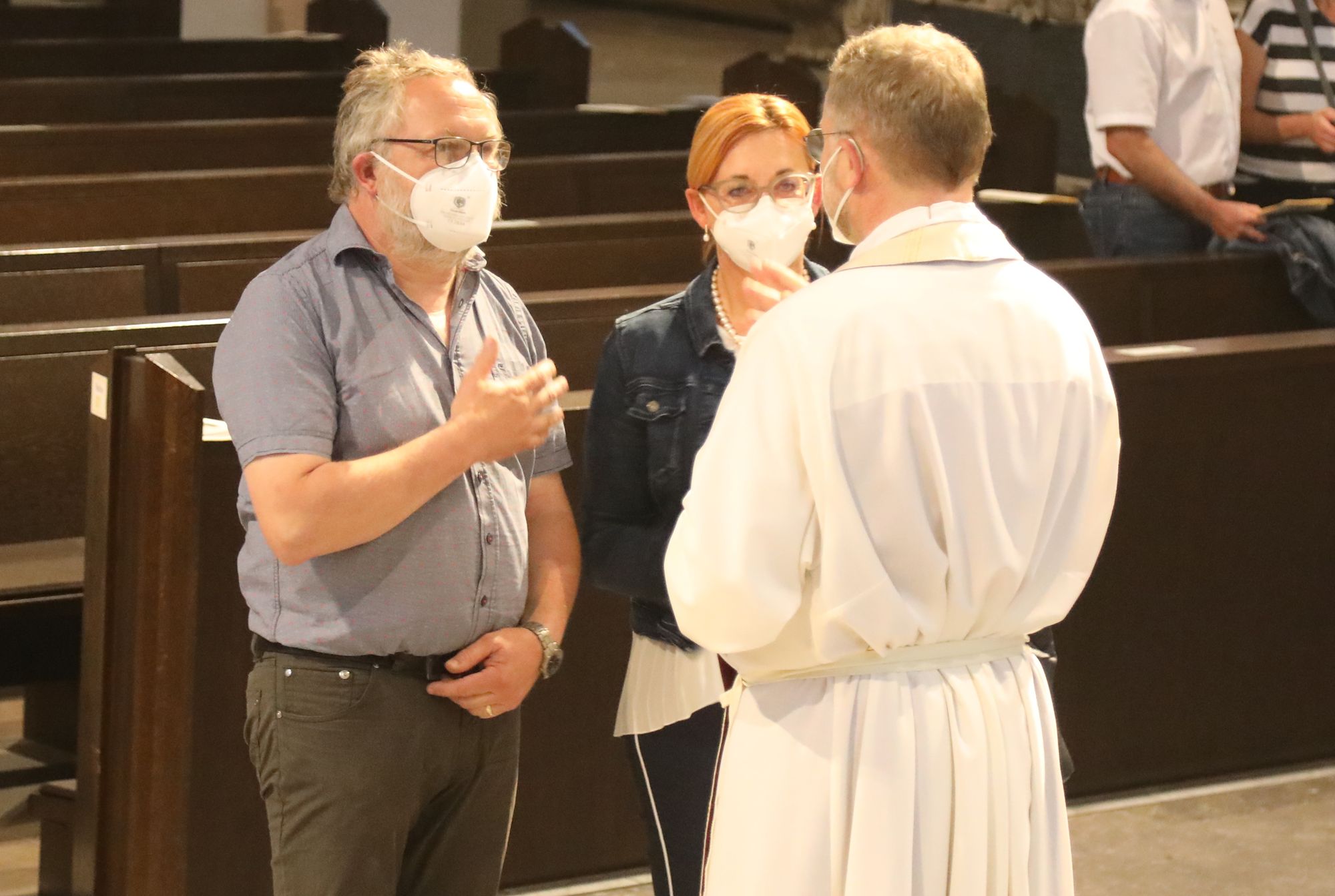 Bei der Eheschließung vor 25 Jahren seien die Geigen sicherlich im siebten Himmel gehangen, sagte der Generalvikar zu den Ehejubilaren. In der heutigen Lesung dagegen habe man gehört: „Ertragt einander in Liebe und bemüht euch, die Einheit des Geistes zu wahren durch das Band des Friedens.“ „Einander in Liebe ertragen, das heißt auch, den anderen mittragen, wenn er oder sie gerade etwas tut, was man selbst so nicht gemacht hätte, es aber mitträgt – aus Liebe“, erklärte der Generalvikar. Die Liebe lehre auch, dass der andere an seinen Grenzen leide und es ihm oder ihr guttue, mit Güte darauf zu reagieren und auch so die Grenzen des anderen mitzutragen. Unablässiger Motor dafür sei die ständige Vergebungsbereitschaft. Sie löse das Versprechen ein, zum anderen immer wieder Ja zu sagen und so das Jawort aus dem Trauungsgottesdienst vielleicht noch einmal existenzieller in einem Jawort der Versöhnung neu zu sprechen.
