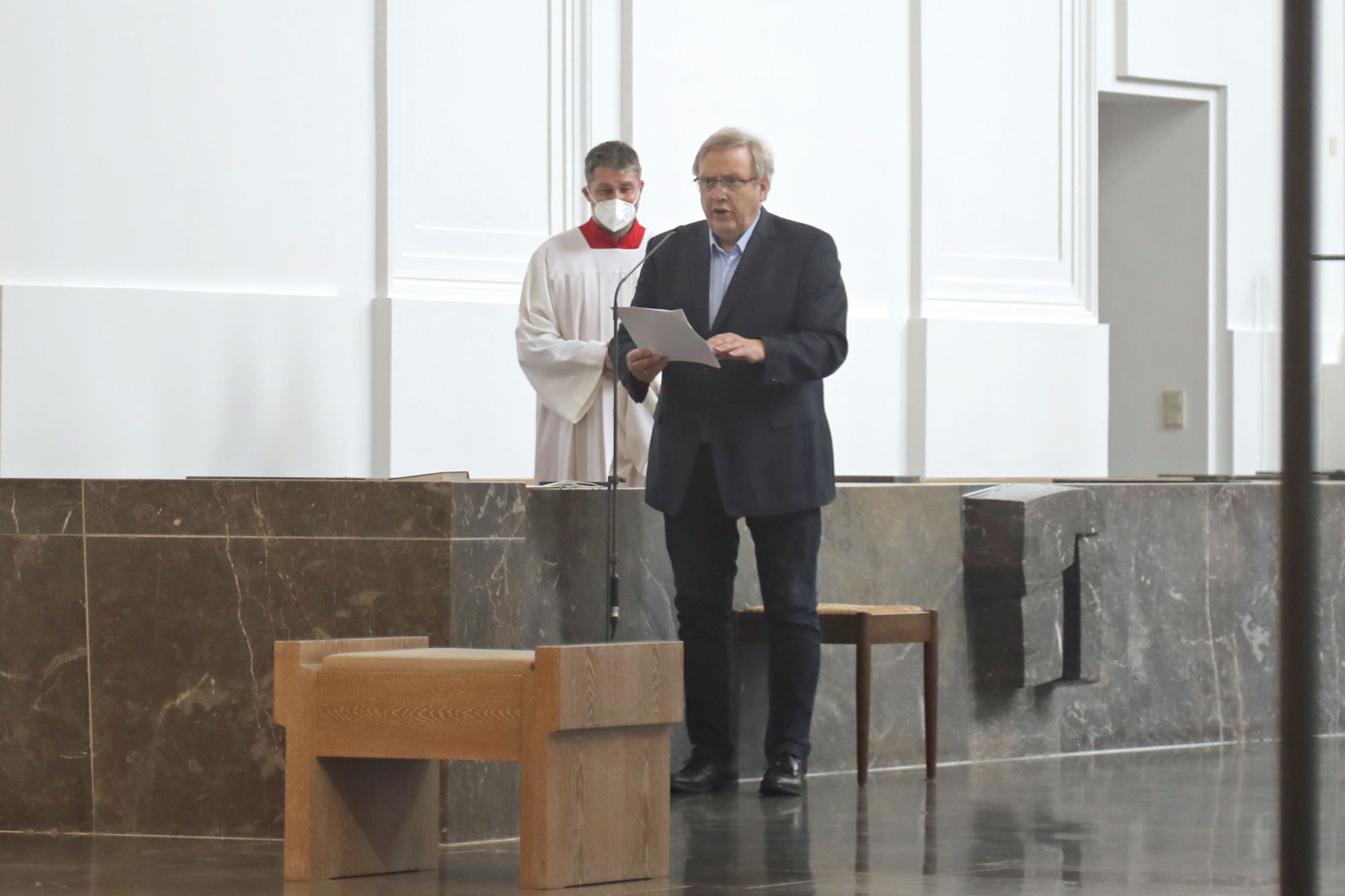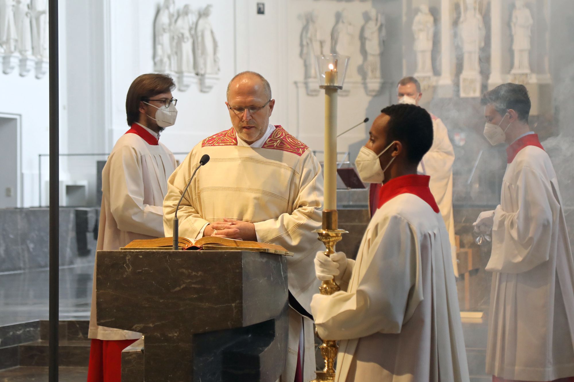 Würzburg (POW) Mit rund 80 Ehepaaren aus der ganzen Diözese hat Generalvikar Dr. Jürgen Vorndran am Freitagabend, 25. Juni, einen Pontifikalgottesdienst gefeiert. Eingeladen waren Ehejubilare, die in den Jahren 2020 und 2021 auf 25 gemeinsame Jahre zurückblicken. In seiner Begrüßung bat der Generalvikar die Gläubigen um ihr Gebet für die Opfer der Gewalttat, die sich am späten Nachmittag auf dem Barbarossaplatz in Würzburg ereignet hatte. „Würzburg ist erschüttert von einem Amoklauf. Wenn wir jetzt im Dom zusammen sind, dann wollen wir besonders für die Opfer und die Angehörigen beten in dieser schweren Stunde.“