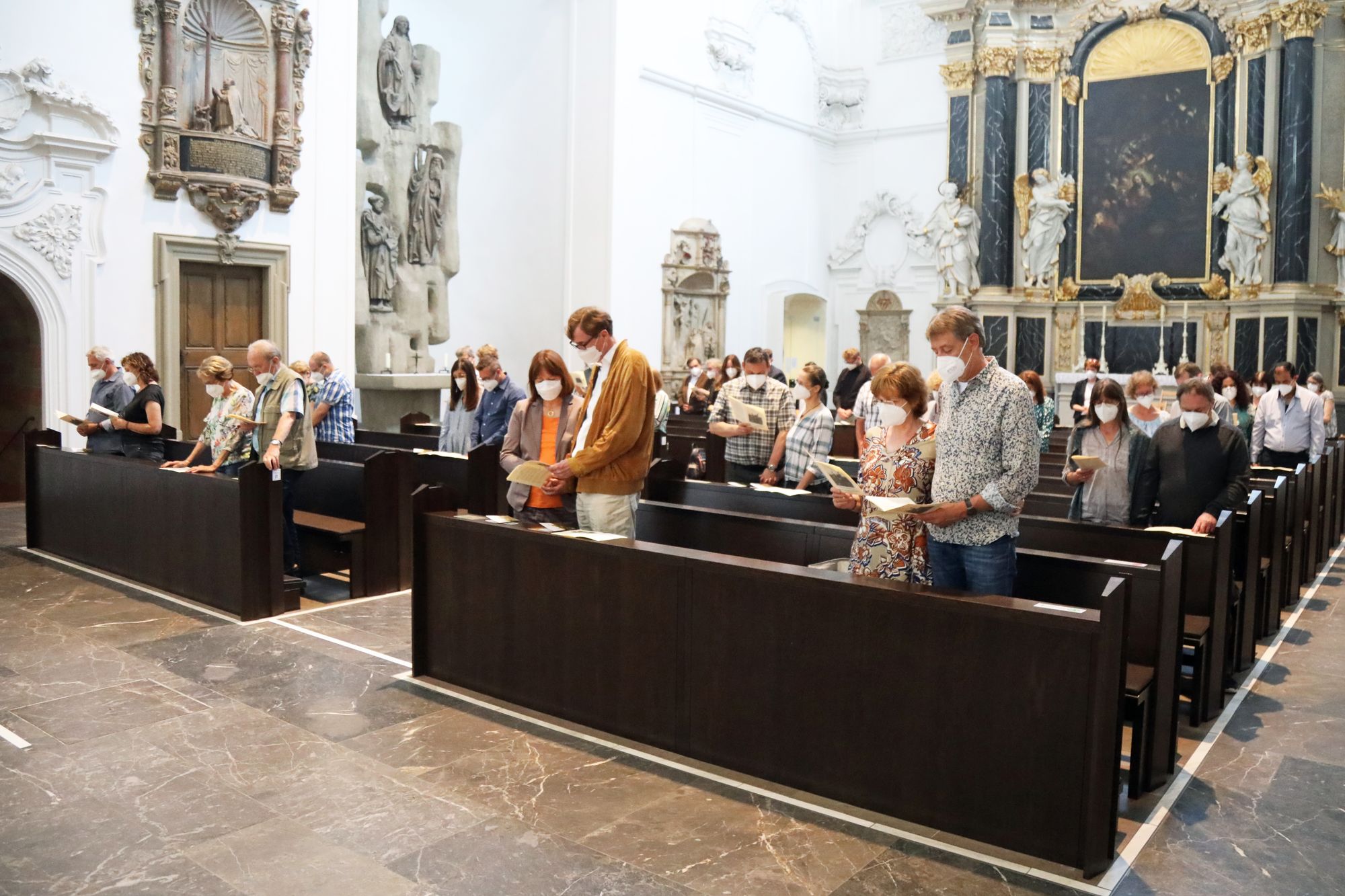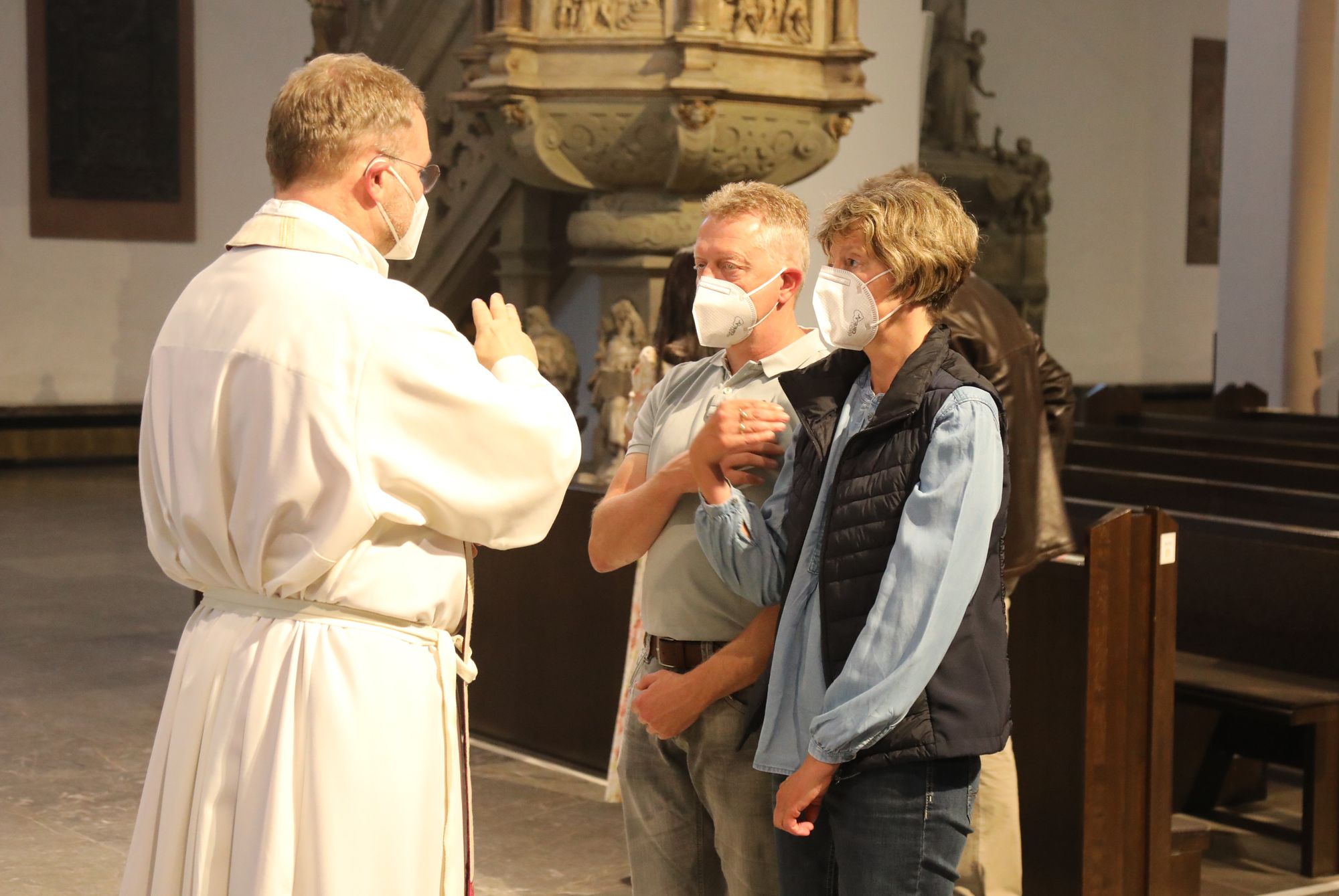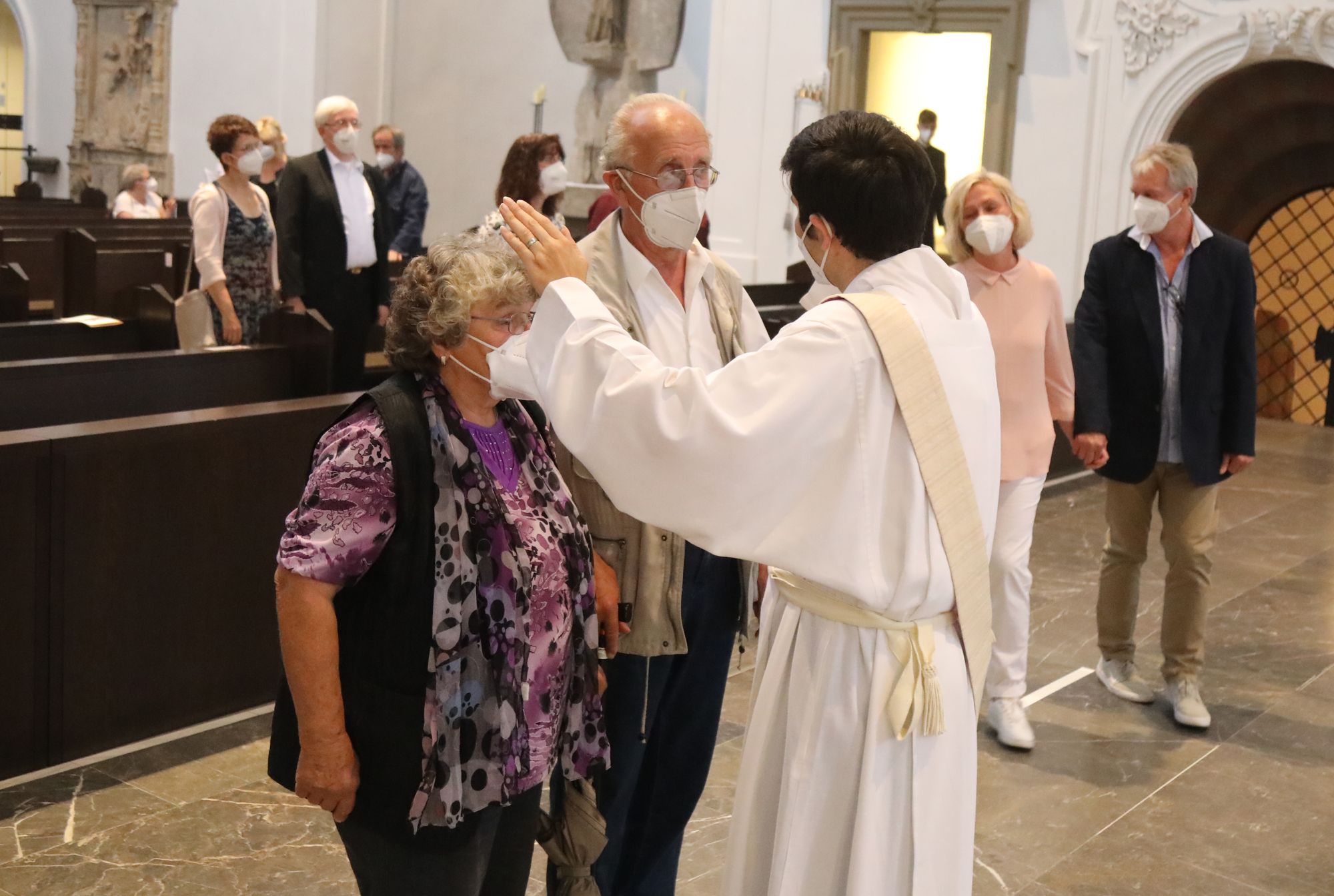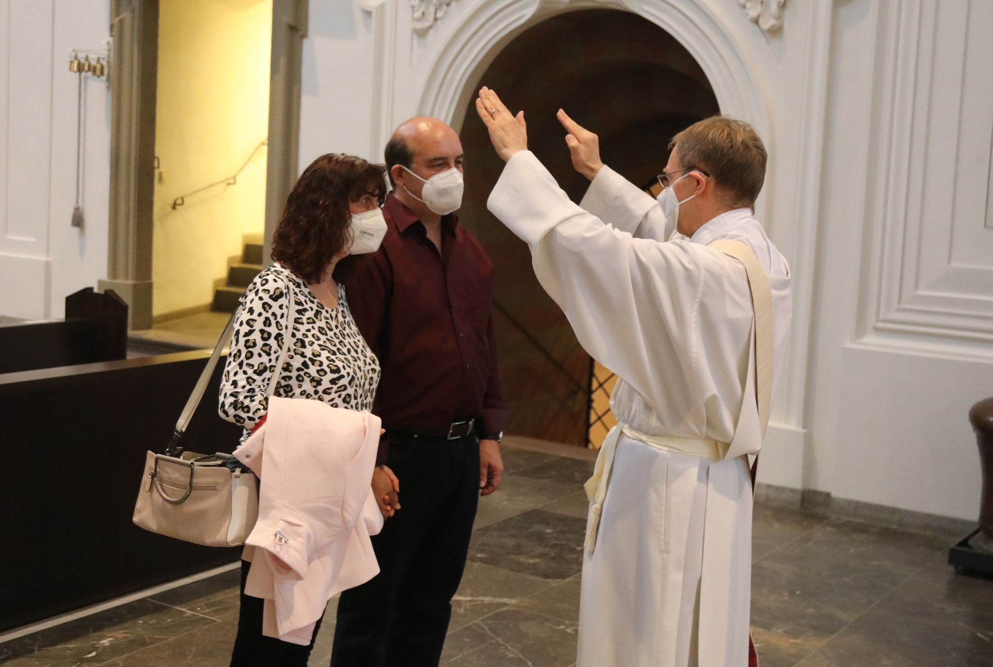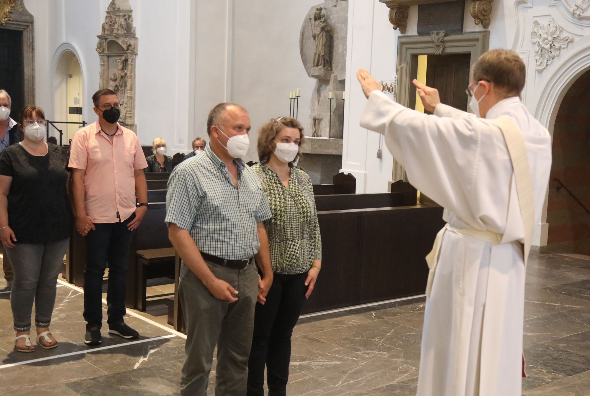 Der Festgottesdienst für Ehejubilare war der sechste von insgesamt 18, die der diesjährigen Kiliani-Wallfahrtswoche vorgeschaltet sind. Gemeinsam erneuerten die Jubelpaare im Dom ihr Eheversprechen. Nach dem Gottesdienst ließen sich die Ehepartner von Generalvikar Vorndran, Domkapitular Dompfarrer Stefan Gessner sowie weiteren Priestern, darunter die Diakone Franz Huth und Thomas Wolf, mit Abstand segnen. Die traditionelle Begegnung auf dem Kiliansplatz im Anschluss an den Gottesdienst musste aufgrund der Coronapandemie entfallen.