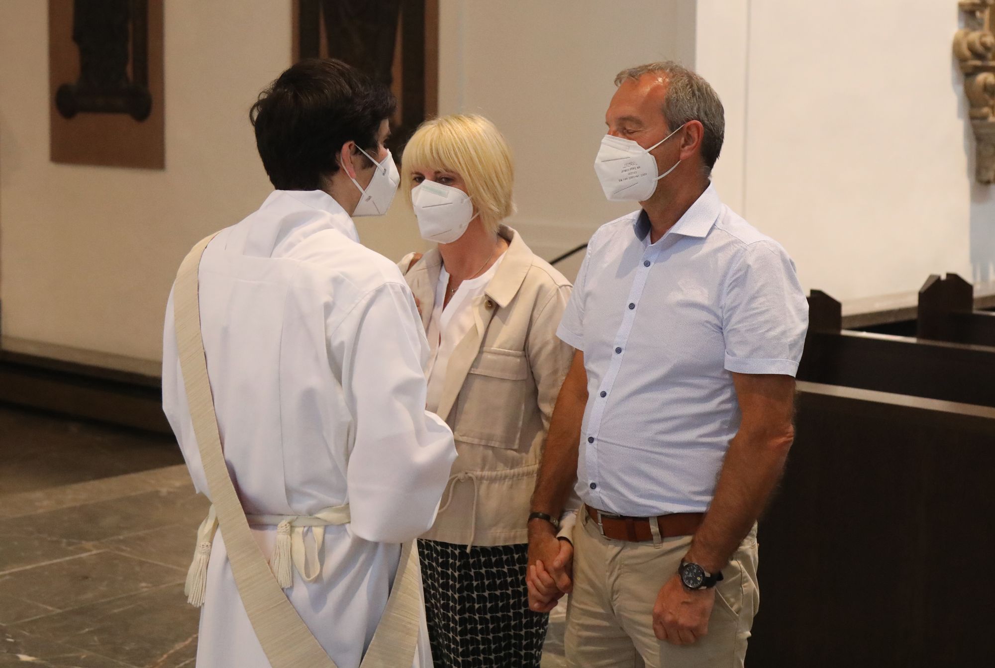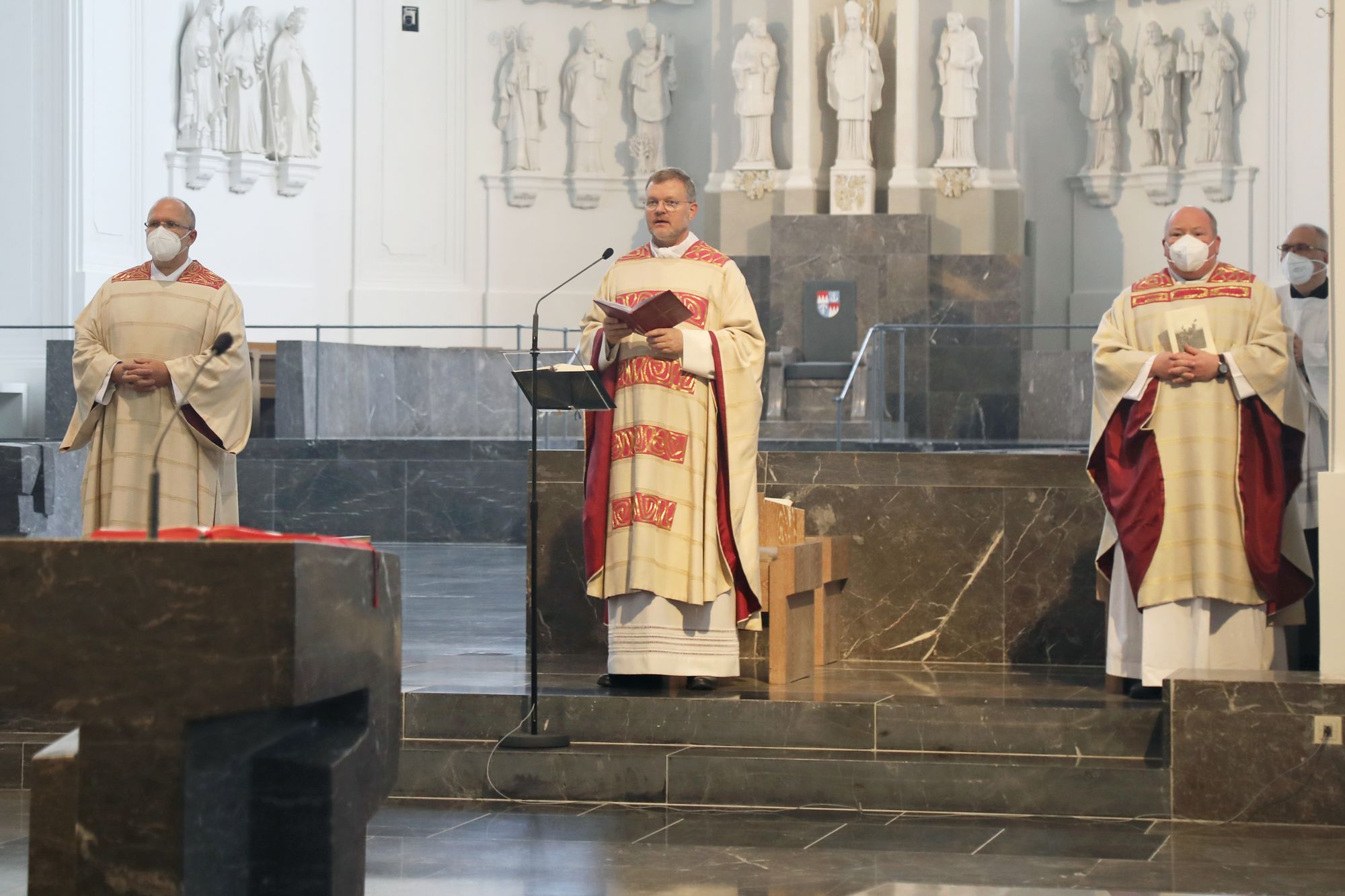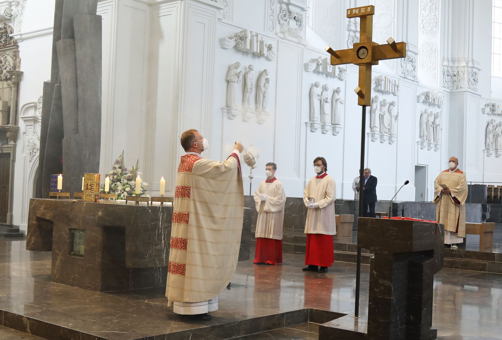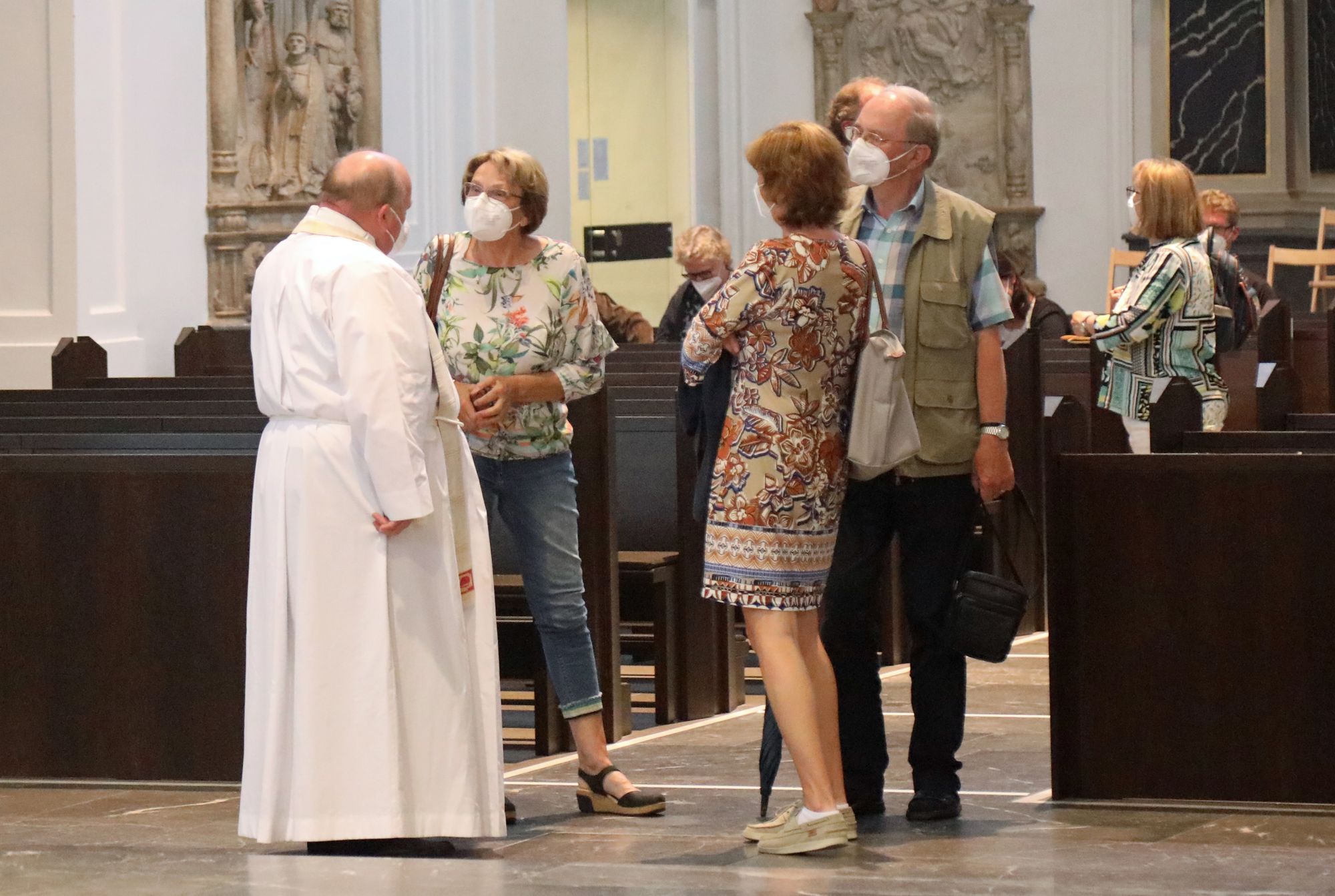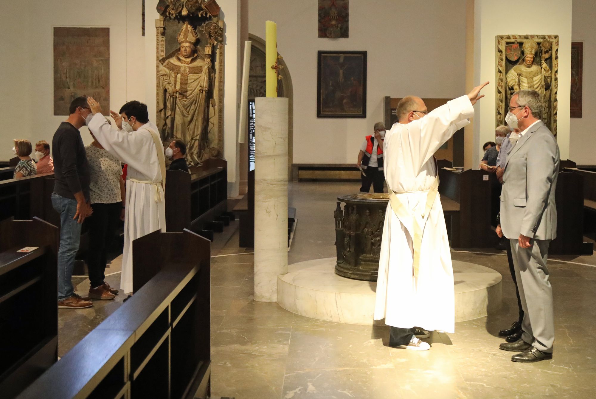 Der Festgottesdienst für Ehejubilare war der sechste von insgesamt 18, die der diesjährigen Kiliani-Wallfahrtswoche vorgeschaltet sind. Gemeinsam erneuerten die Jubelpaare im Dom ihr Eheversprechen. Nach dem Gottesdienst ließen sich die Ehepartner von Generalvikar Vorndran, Domkapitular Dompfarrer Stefan Gessner sowie weiteren Priestern, darunter die Diakone Franz Huth und Thomas Wolf, mit Abstand segnen. Die traditionelle Begegnung auf dem Kiliansplatz im Anschluss an den Gottesdienst musste aufgrund der Coronapandemie entfallen.