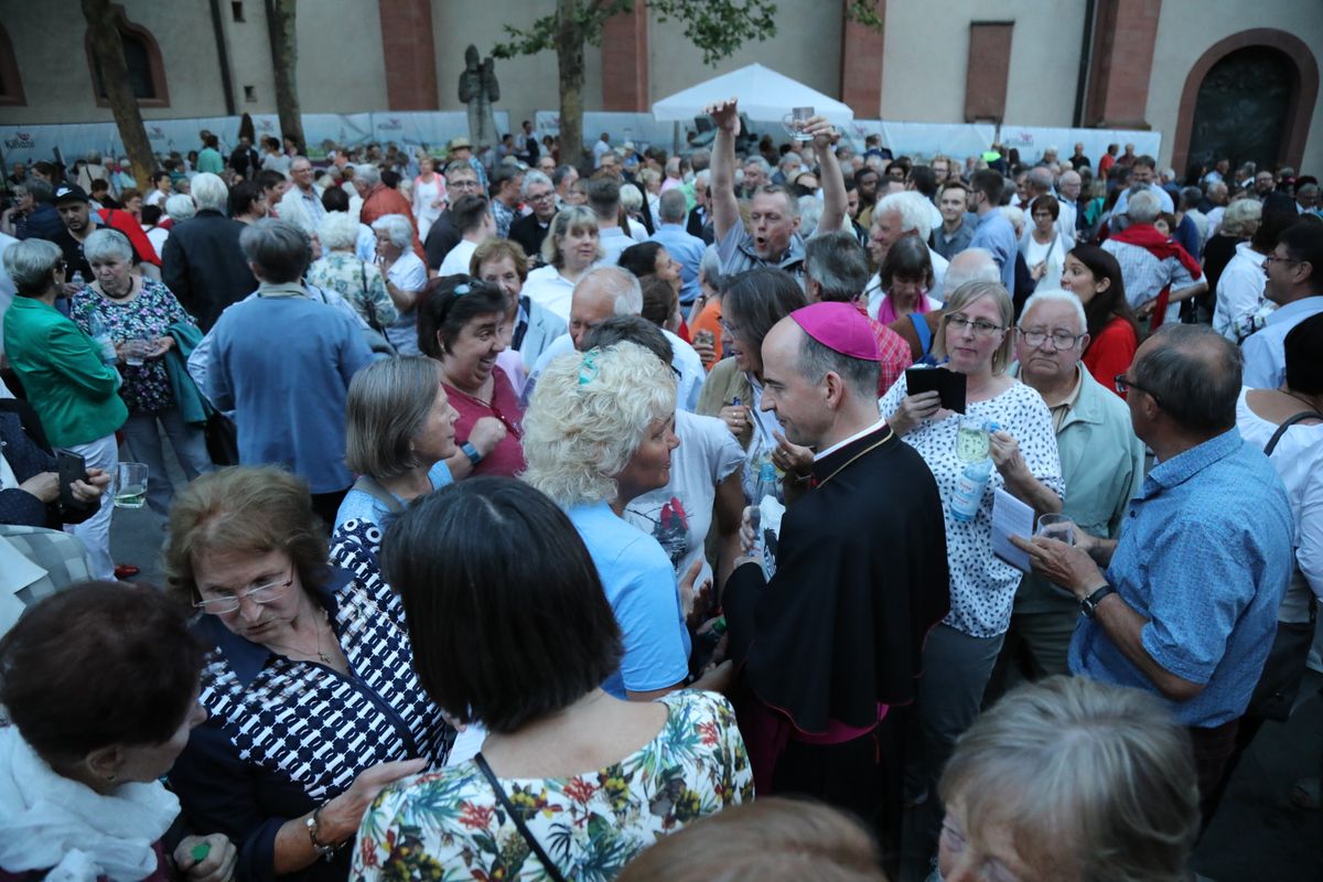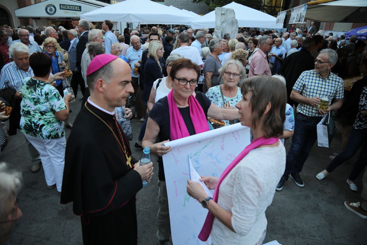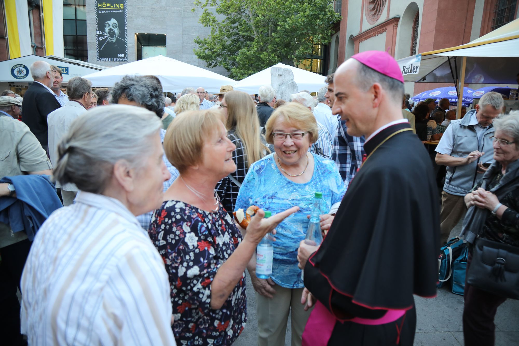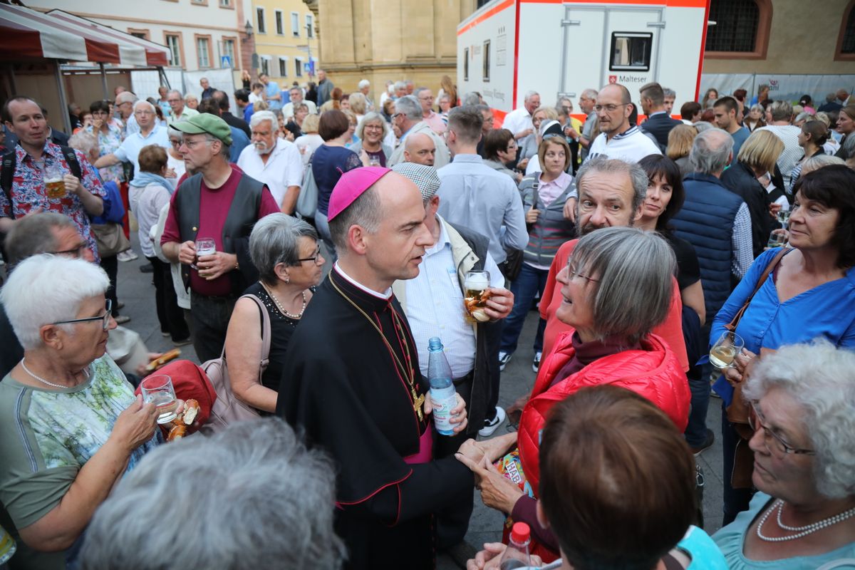 Die Begegnung auf dem Kiliansplatz im Anschluss nutzten viele der zum Beispiel als Gottesdienstbeauftragte, Kommunionhelfer, Lektoren oder Organisten tätigen Frauen und Männer für den Austausch untereinander oder einen Plausch mit Bischof Jung. „Wir haben heute neue Kräfte für unsere Aufgaben schöpfen können“, sagten Mesnerin Friederike Englert und Lektorin Isolde Hasenstab aus Rothenbuch (Landkreis Aschaffenburg). Franz Platzer aus der Würzburger Pfarrei Stift Haug freute sich über die Gelegenheit, Mesner-Kolleginnen und -Kollegen zu treffen. „Es ist schön, dass das Engagement der Laien gewürdigt wurde“, sagten Marianne und Paul Erhard, die in Weichtungen (Landkreis Bad Kissingen) als Mesner aktiv sind. „Ich fand toll, dass der Bischof den Gottesdienst mitten im Volk begonnen hat, und nicht wie sonst vorne im Altarbereich“, sagte Imelda Draxler, die in Weichtungen Gottesdienstbeauftragte und Kommunionhelferin ist.